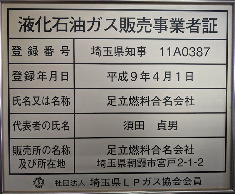 | 認可・許可・登録 | LPガス販売事業者登録 LPガス保安認定 |
